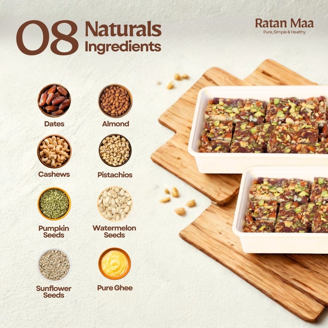 Perfect chai ke saath, office breaks, ya travel ke liye – Ratan Maa Khajur Pak banega aapka favourite companion. Try karke dekhiye!